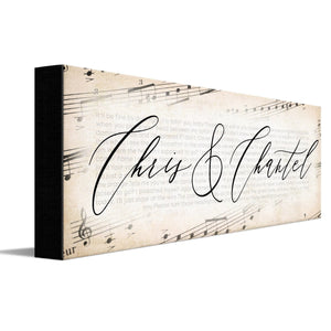 This personalized gift in celebration of your love features your names and your song. Personal Prints offers a variety of sizes and display options and creating your custom gift is easy using the input boxes below. Your personalization includes the song lyrics and of course your names.