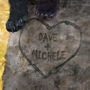 The personalization is created as a permanent part of the image and will not look like a stamp or afterthought as it is uniquely adjusted by our designers to align perfectly in the heart. Since each personalization has an artist,s touch, previews of your names are not available. See the personalization detail (last image) for an example of the style and look of the personalized names.