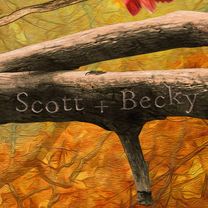Each personalized art print features your custom names as a part of the art, carved into the tree. The personalization is created as a permanent part of the image and will not look like a stamp or afterthought as it is uniquely adjusted by our designers to fit perfectly in the heart. Since each personalization has an artist,s touch, previews of your names are not available. See the personalization detail for an example of the style and look of the personalized names.