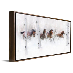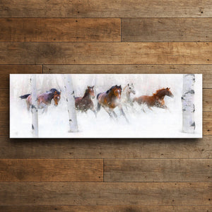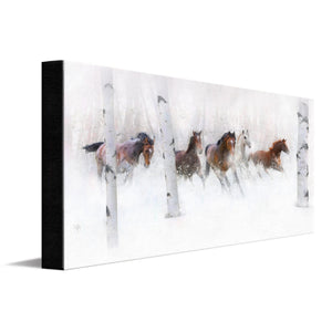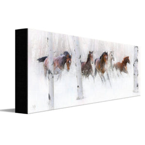 The beautiful composition and movement of the horses through the snow draws your eyes to the subtle personalization... your names carved into the tree as a part of the artwork.