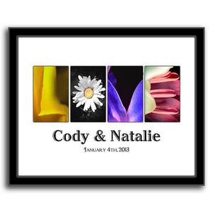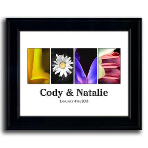 Just like your love, the bold flowers in this print will never fade or wilt with time. Look closely and you will see that the romantic photographs actually spell the word "Love." To make it even more special, each is personalized for you on two lines.