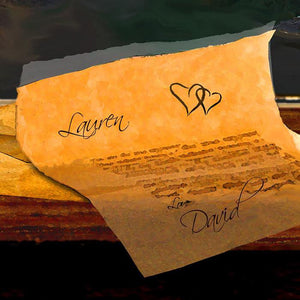 Your personalized art is created by our designers so that your names are perfectly aligned within the image. Because each piece has an artist’s touch, a preview is not available. However, the second image will give you an example of the style.