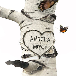 This fun print features two black bear cubs and your custom personalization. Select your print display/size, next select if you would like a personalized sign or carved heart on the Aspen tree. Then, simply enter your personalization in the input box below and let our artists do the rest! Our artists will create your personalization as a part of the artwork.