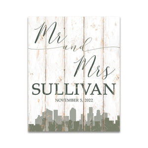 Personalize this cute Mr. & Mrs. sign with your last name and date! Four themes to choose from... city, beach, trees or mountains.