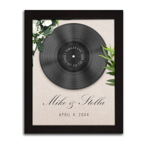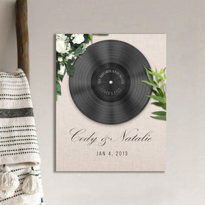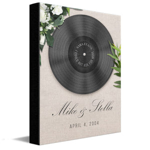 This special personalized gift features your special song (artist and title), along with your names and optional special date (Anniversary). Available in three different stunning styles (BOHO, Rustic, and Modern) and in several different sizes and finishing styles (frameless Stretched Canvas, framed behind glass, and Float Framed Canvas. Simply enter the information in the "Create Now" box, and we will do the rest! Made in the USA with the highest quality standards and shipped fast to you. The perfect personalized gift that celebrates love from Personal Prints. Comes ready-to-hang. Perfect for Valentine,s Day, Weddings, Anniversaries, or just to say "I Love You" in a timeless and romantic way.