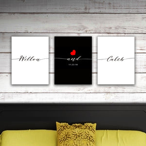 Add some modern, minimalist artwork to your home with this set of three romantic personalized art panels.