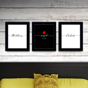 - This simply elegant romantic print set features your names and a special date customized as a part of the art.