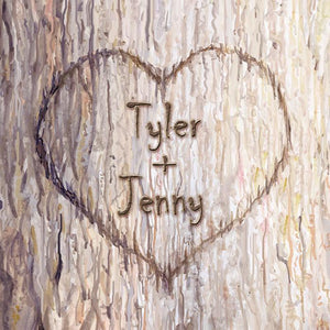 The personalization is created as a permanent part of the image and will not look like a stamp or afterthought as it is uniquely adjusted by our designers to align perfectly in the heart. Since each personalization has an artist's touch, previews of your names are not available. See the personalization detail for an example of the style and look of the personalized names.