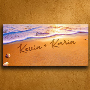 Each print is created just for you, with your names as a part of the art... written in the sand on the beach. It makes the perfect romantic keepsake gift that is personalized and will be enjoyed for a lifetime of love. Order yours today!