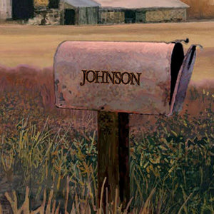 Every outdoorsman will appreciate this beautiful wildlife art that masterfully captures a legendary Whitetail buck at daybreak and features the personalized name of your choice on the mailbox.
