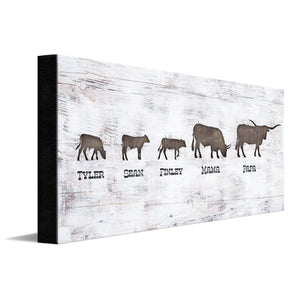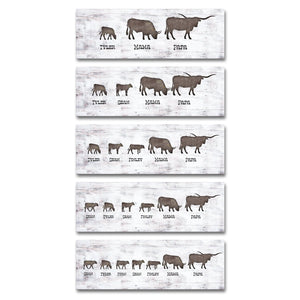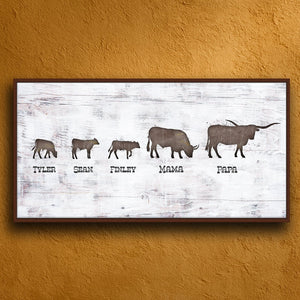 This fun personalized gift for any family features a mama & papa Longhorn, & playful calves walking together. Customized for you with the names and number of kids... Makes a truly special gift for your any occasion!