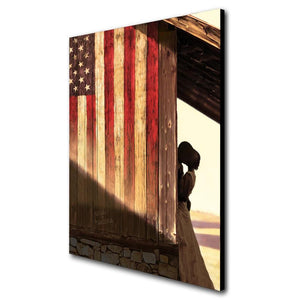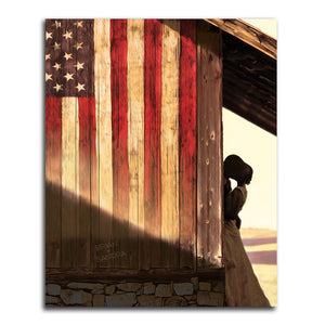 This romantic and patriotic country image by artist Scott Kennedy features your personalized names as a part of the artwork. The lovers embrace, the American USA flag on barnwood, and the personalized names all work together to create a passionate scene and a truly romantic gift for the one you love.