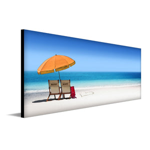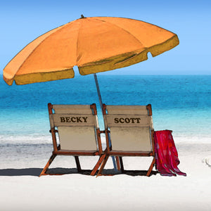 - This personalized art can be yours by adding your name to the chairs and reserving your spot in this romantic beach scene on canvas.