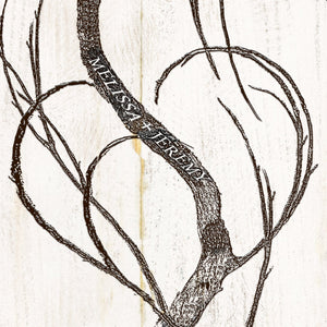 The personalization is created as a permanent part of the image and will not look like a stamp or afterthought as it is uniquely adjusted by our designers to align perfectly in the heart. Since each customization has an artist's touch, previews of your names are not available. See the personalization detail (last image) for an example of the style and look of the personalized names.