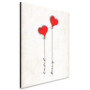 This special personalized gift features two red balloons and your personalized names in script at the bottom of the strings.