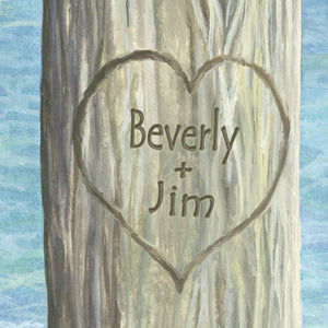 The personalization is created as a permanent part of the image and will not look like a stamp or afterthought as it is uniquely adjusted by our designers for perfect alignment. Since each personalization has an artist,s touch, previews of your names are not available. See the personalization detail