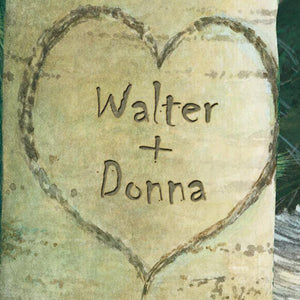The personalization is created as a permanent part of the image and will not look like a stamp or afterthought as it is uniquely adjusted by our designers to align perfectly in the heart. Since each personalization has an artist,s touch, previews of your names are not available. See the personalization detail (third image) for an example of the style and look of the personalized names.