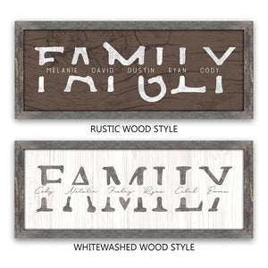 This simple rustic gift for the family is personalized with the names of each family member (mom, dad, children, and pets) as a part of the art...