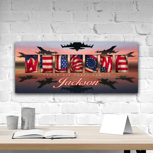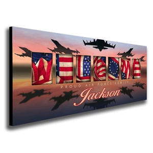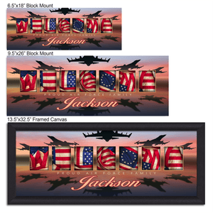 Customize this Air Force Art design with the name of your choice as a personalized military gift or to show family and guests your Air Force pride.