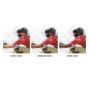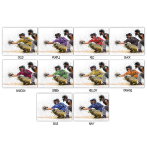 Personalized art for the baseball catcher that features your name on the jersey as well as selection of skin tone, the jersey number, and jersey color of your choice. Simply enter your customization options in the input boxes below and let our artists do the rest... ships ready to hang and enjoy!