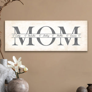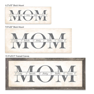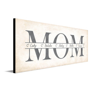 This contemporary gift for mom is personalized with the names of her children as a part of the art... Our popular Mom & Children sign is now available in this beautiful clean contemporary design style.