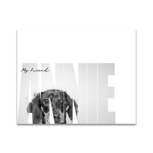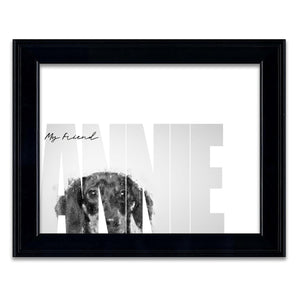 Celebrate your pet Dachshund with this contemporary personalized art print that includes your pet,s name customized as a part of the image. Simply enter your pet,s name in the input box below and our artists will create a beautiful image with the Dachshund peeking through the font. It makes a perfect unique gift for dog lovers, Dachshund owners & Dachshund breeders.