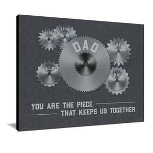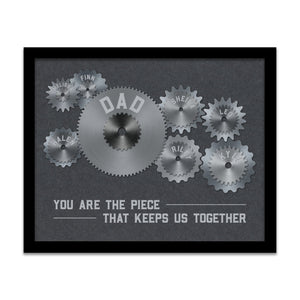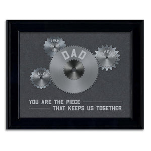 The quote below reads "You are the piece that keeps us together". Made in the USA with the highest quality standards and shipped fast to you. The perfect personalized Father,s Day gift from Personal Prints.