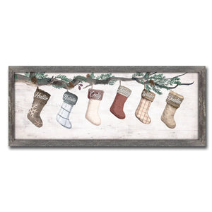 Celebrate Christmas memories that will last for a lifetime with this joyous personalized gift. This print can be ordered with 2, 3, 4, 5 or 6 individually personalized stockings. Simply enter your stocking personalizations in the input box below, with each name separated by a comma. Stockings will be personalized in order from left to right.