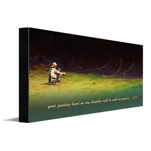 This customized gift for dad is personalized with the name(s) of his child(ren) after the quote, "your guiding hand on my shoulder will be with me forever."