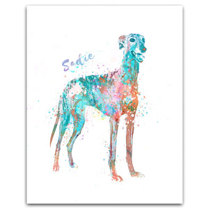 Celebrate your Greyhound with this colorful personalized print that includes your pet,s name customized as a part of the image.
