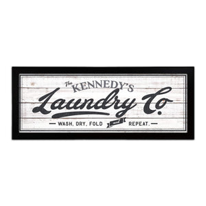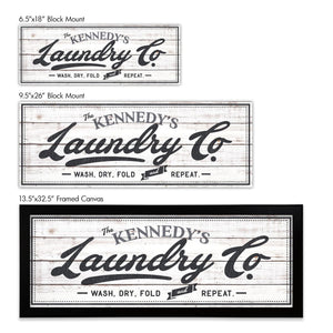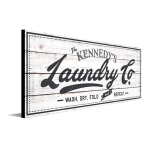 Personalized with your name, this vintage style Laundry Co. sign is a great addition to any home. This rustic, farmhouse-style design will make a great addition to a laundry room. It reads Laundry Co, wash, dry, fold, and repeat!