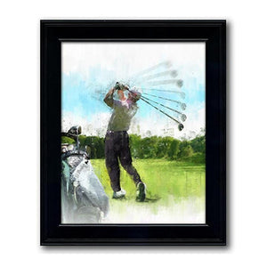 Personalized art for the golfer that features your name on the golf bag as well as a selection of a Right- or Left-handed player and three skin tone options. Simply enter your customization options in the input boxes below and let our artists do the rest... ships ready to hang and enjoy!