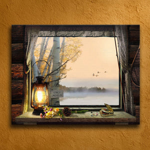 Enjoy a picturesque view of a lake sunrise that includes your personalization as a part of the art. This is perfect to add to your lakehouse/cabin decor.