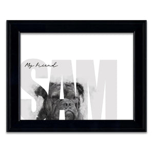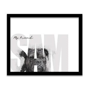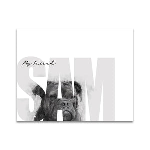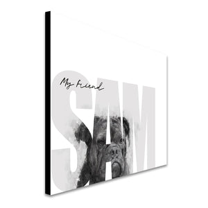 Celebrate your pet Bulldog with this contemporary personalized art print that includes your pet,s name customized as a part of the image. Simply enter your pet,s name in the input box below and our artists will create a beautiful image with the Bulldog peeking through the font. It makes a perfect unique gift for dog lovers, Bulldog owners & Bulldog breeders.