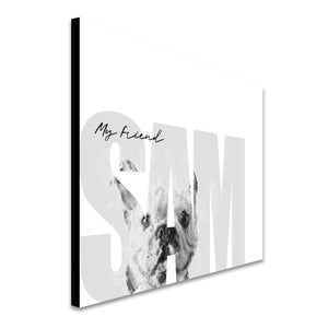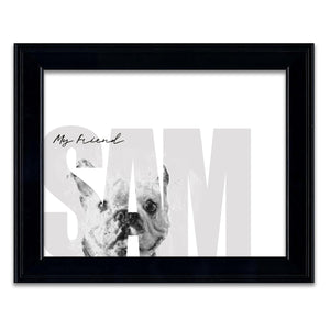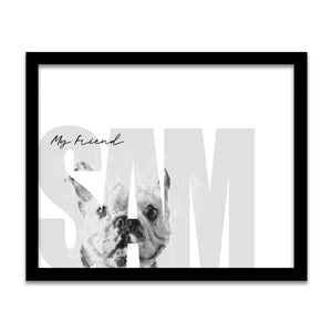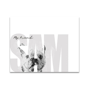 Celebrate your pet Bulldog with this contemporary personalized art print that includes your pet,s name customized as a part of the image. Simply enter your pet,s name in the input box below and our artists will create a beautiful image with the Bulldog peeking through the font. It makes a perfect unique gift for dog lovers, Bulldog owners & Bulldog breeders.