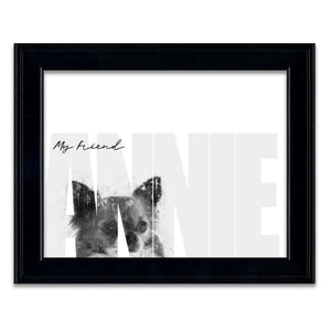 Celebrate your pet Chihuahua with this contemporary personalized art print that includes your pet,s name customized as a part of the image. Simply enter your pet,s name in the input box below and our artists will create a beautiful image with the Chihuahua peeking through the font. It makes a perfect unique gift for dog lovers, Chihuahua owners & Chihuahua breeders.