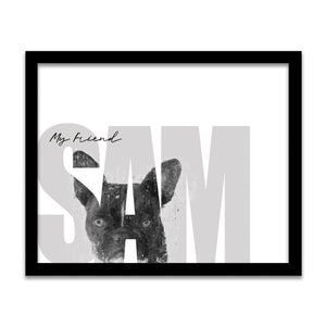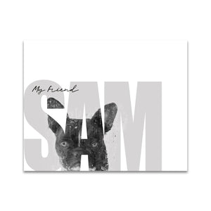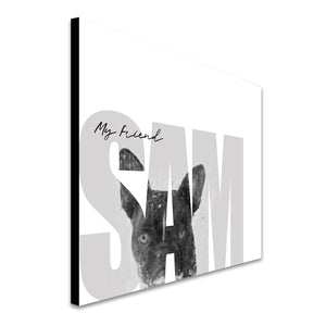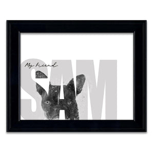Celebrate your pet French Bulldog with this contemporary personalized art print that includes your pet,s name customized as a part of the image. Simply enter your pet,s name in the input box below and our artists will create a beautiful image with the Frenchie peeking through the font. It makes a perfect unique gift for dog lovers, French Bulldog owners & breeders.