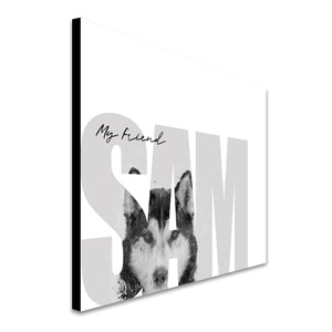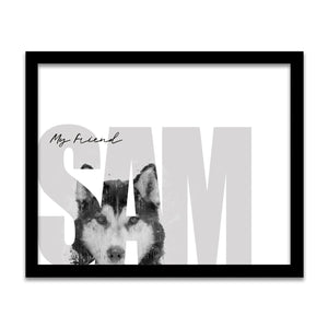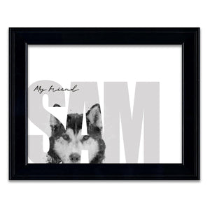 Celebrate your pet Siberian Husky with this contemporary personalized art print that includes your pet,s name customized as a part of the image. Simply enter your pet,s name in the input box below and our artists will create a beautiful image with the Husky peeking through the font. It makes a perfect unique gift for dog lovers, Siberian Husky owners & breeders.