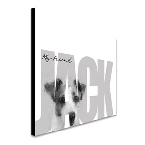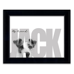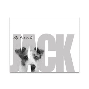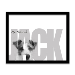 Celebrate your pet Jack Russell Terrier with this contemporary personalized art print that includes your pet,s name customized as a part of the image. Simply enter your pet,s name in the input box below and our artists will create a beautiful image with the Jack Russell peeking through the font. It makes a perfect unique gift for dog lovers, Jack Russell Terrier owners & breeders.
