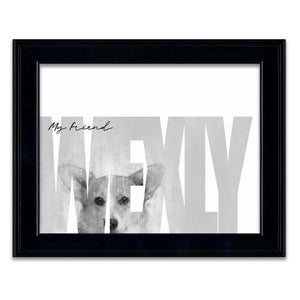 Celebrate your pet Corgi with this contemporary personalized art print that includes your pet,s name customized as a part of the image. Simply enter your pet,s name in the input box below and our artists will create a beautiful image with the Corgi peeking through the font. It makes a perfect unique gift for dog lovers, Corgi owners & Corgi breeders.