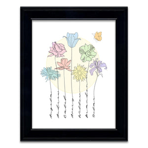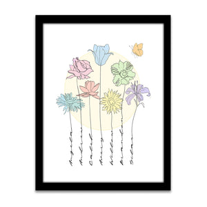 Personalized with your family names on each of the flower stems! Each print is created just for you, with your customization as a part of the art.