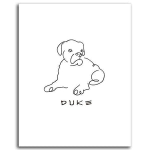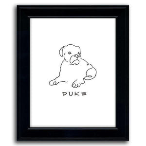 With only a few strokes of the pen, the artist has beautifully and masterfully captured the Boxer breed. What,s more, this simple and elegant print is personalized with your dog,s name. Each personalization is uniquely created as a permanent part of the image and makes this print a truly special and fun way to decorate any space.