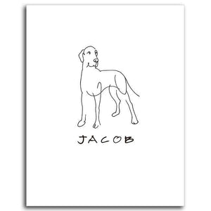 With only a few strokes of the pen, the artist has beautifully and masterfully captured the Great Dane breed. What,s more, this simple and elegant print is personalized with your dog,s name. Each personalization is uniquely created as a permanent part of the image and makes this print a truly special and fun way to decorate any space.