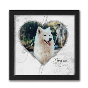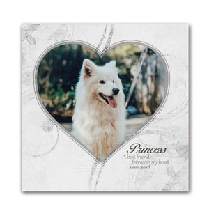 Turn your favorite photo of your pet dog into art. Select your print option, enter your personalization and upload your photo (larger images are better). The end result is a stunning work of art that Comes ready-to-hang. Makes a very special pet memorial that can be cherished for years to come.