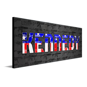 Our Red, White & Gun Blueprint Sign is made with pride in the USA, ships fast to your door and features your personalized name in the artwork...