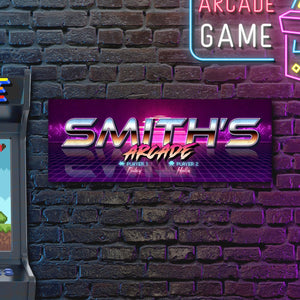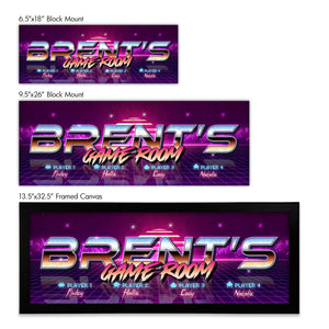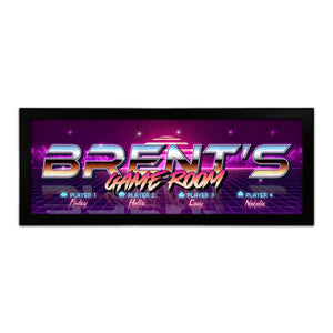 This customized 80,s inspired action sign will help turn any room into the kick-ass man cave/ video game room/ space of your dreams and features your personalized name and player names as a part of the design!