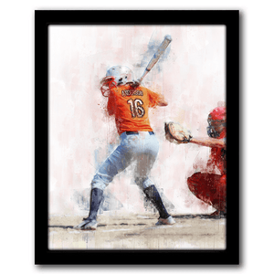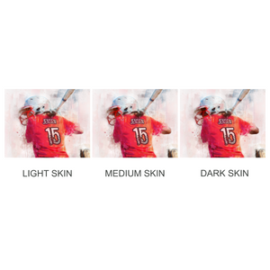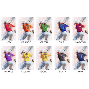 Personalized sports artwork for the softball player that features your name on the jersey as well as a selection of a Right- or Left-handed batter, skin tone, the jersey number and color of your choice as a part of the watercolor sports art. Simply enter your customization options in the input boxes below and let our artists do the rest... ships ready to hang and enjoy!