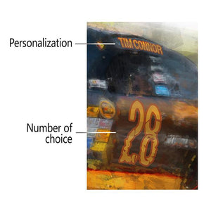 Personalized sports artwork for the racing car driver, NASCAR fan and all-around auto enthusiast that features your name and number on the stock car. Simply enter your customization options in the input box below and let our artists do the rest... ships ready to hang and enjoy!