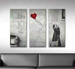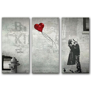 - "Street Heart" features a beautiful ink drawing of a kissing couple with red balloons that form a heart in this romantic print.
