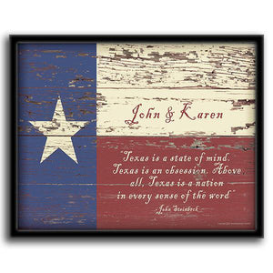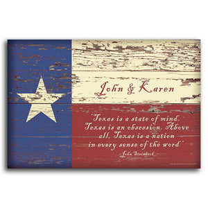 The side of a 100-year-old barn was used for the image on this great personalized Texas gift that proudly displays the Texas flag. Each features your personalization as a part of the artwork along with a great Texas quote...